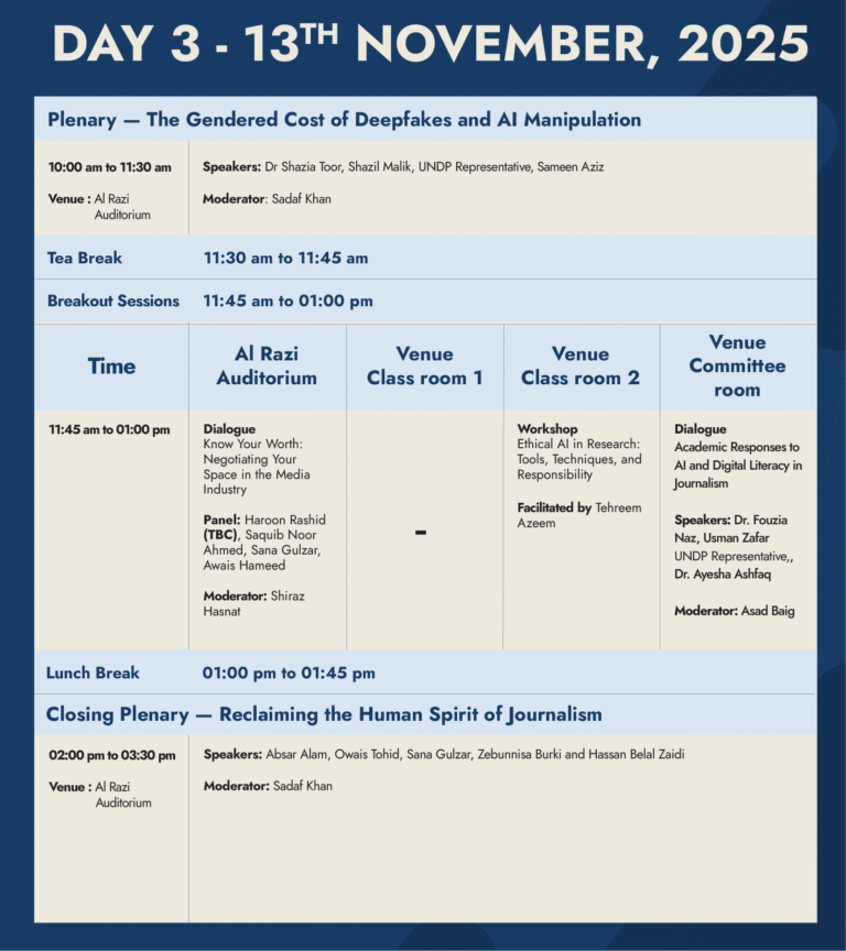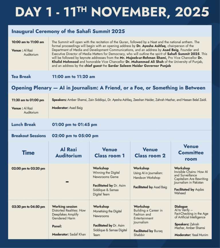By facilitating multi-stakeholder conversations, the summit aims to guide Pakistani newsrooms toward responsible AI adoption which aligns with journalistic values, human oversight, and the public interest.